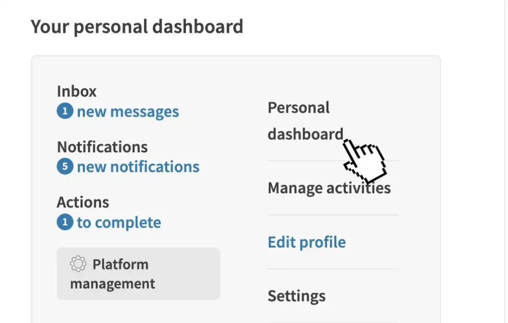 - Use the main menu to navigate to your dashboard.